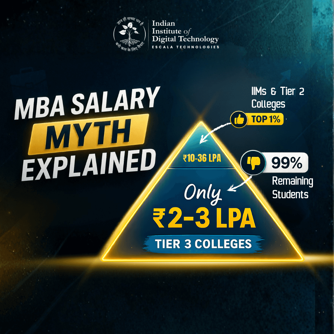At the very top, MBA salaries are higher — IIM graduates earn more than most digital marketers in their first job. But here’s the catch: that top tier represents less than 1% of all MBA graduates in India. For the other 99%, the MBA degree salary is in many cases lower than what a skilled digital marketer earns.